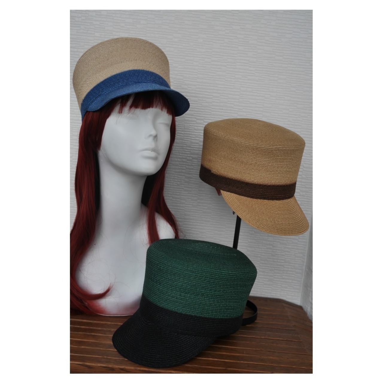 ※ベージュ×ブラウンのキャップは、サイズ調整ベルトではなくグログランリボンとなっております。サイズ調整ベルトに付け変えることもできます。